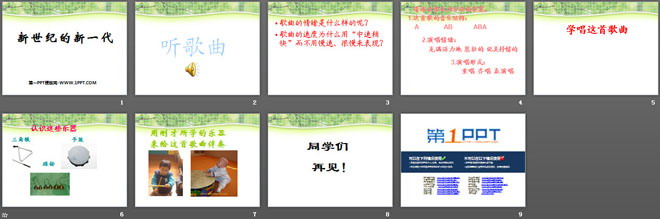 关键词:新世纪的新一代教学课件,七年级上册音乐PPT课件下载,七年级音乐幻灯片课件下载,新世纪的新一代PPT课件下载,.PPT格式;