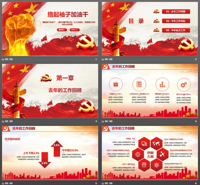 这是一套撸起袖子加油干主题的,政府工作报告解读暨两会政府汇报学习PPT模板,共31张;