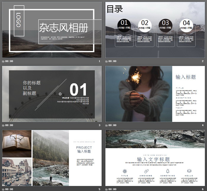这是一套灰色雅致杂志风旅游相册PPT模板,共23张;