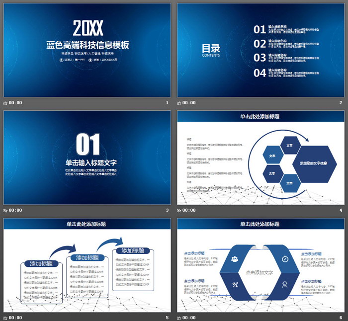 这是一套蓝色简洁粒子背景科技范PPT模板,共25张;