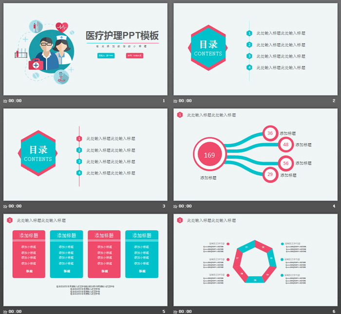 这是一套扁平化医疗医学护理PPT模板,共25张;