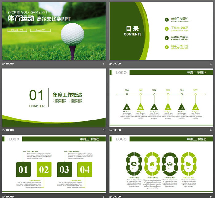 这是一套绿色清新高尔夫球场PPT模板,共26张;