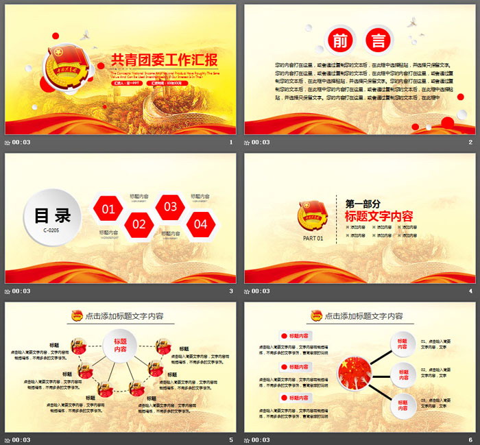这是一套万里长城背景的,共青团工作汇报PPT模板,共26张;