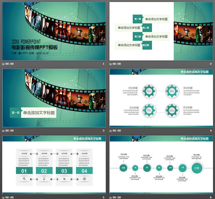 这是一套绿色胶片背景的,电影影视传媒行业PPT模板。共27张;