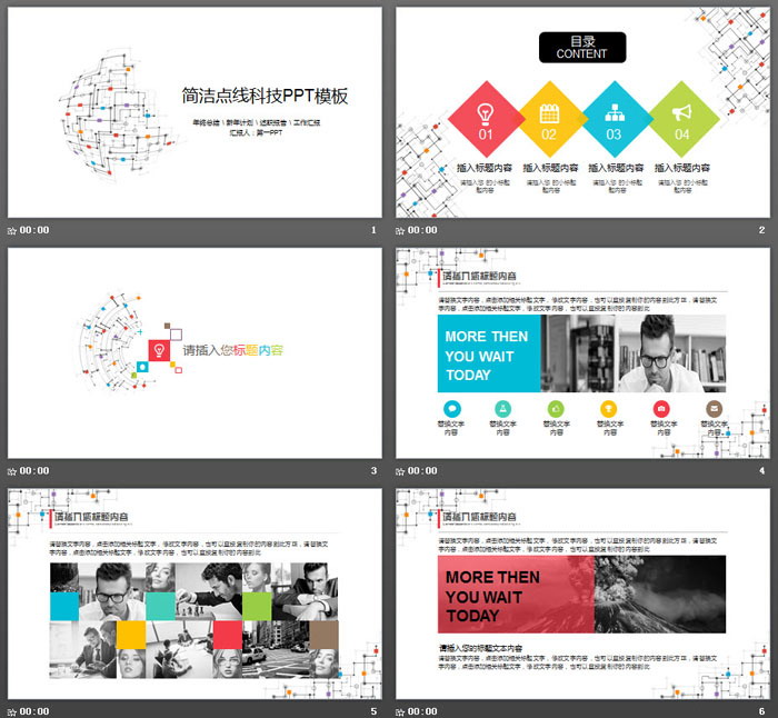 这是一套简洁彩色点线背景的,网络科技PPT模板。共27张;