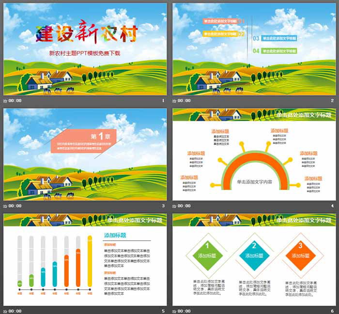 这是一套插画风格的,建设新农村PPT主题模板。共27张;