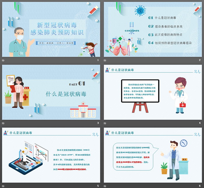 PPT以卡通形式,对大家详细介绍了新型冠状病毒的信息,以及怎样有效预防新型冠状病毒肺炎感染。