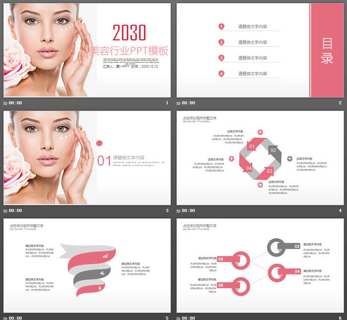 这是一套粉色淡雅美容行业PPT模板,共23张;