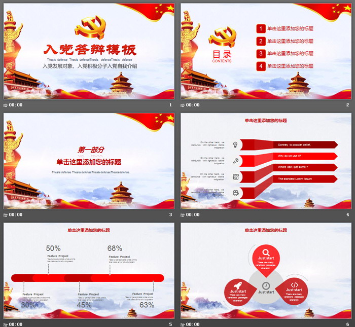 这是一套大气入党答辩PPT模板,共26张;