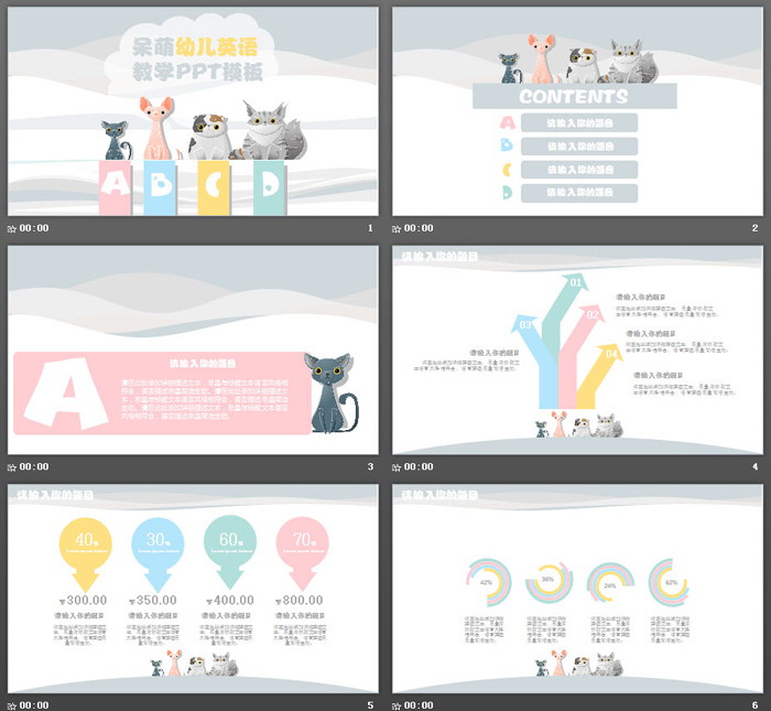 这是一套卡通呆萌小动物背景的,英语培训PPT模板,共25张;