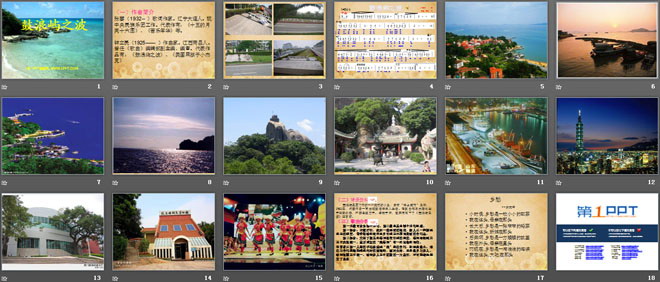 第一部分:比较抒情,犹如一股涌动的浪花,给人以一种源远流长的感觉,带着期盼和依恋思乡情感早已漂向美丽的台湾岛。