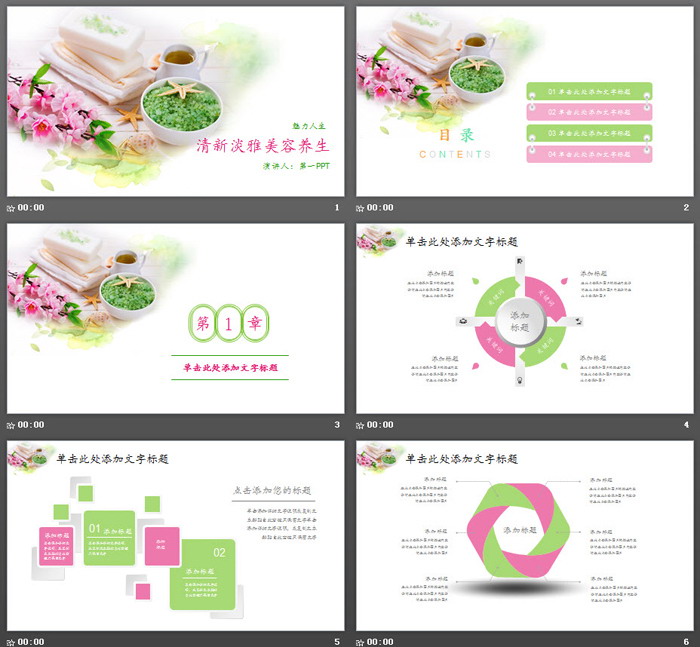 这是一套绿粉配色的女性美容养生PPT模板,共25张;