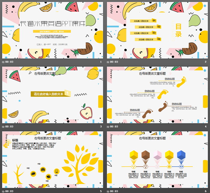 这是一套卡通水果背景的,英语课PPT课件模板,共25张;