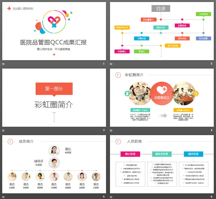 医院医疗品管圈QCC成果汇报PPT模板,共55张;