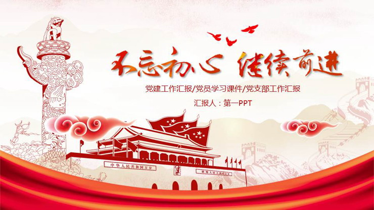 不忘初心继续前进PPT模板,共24页;