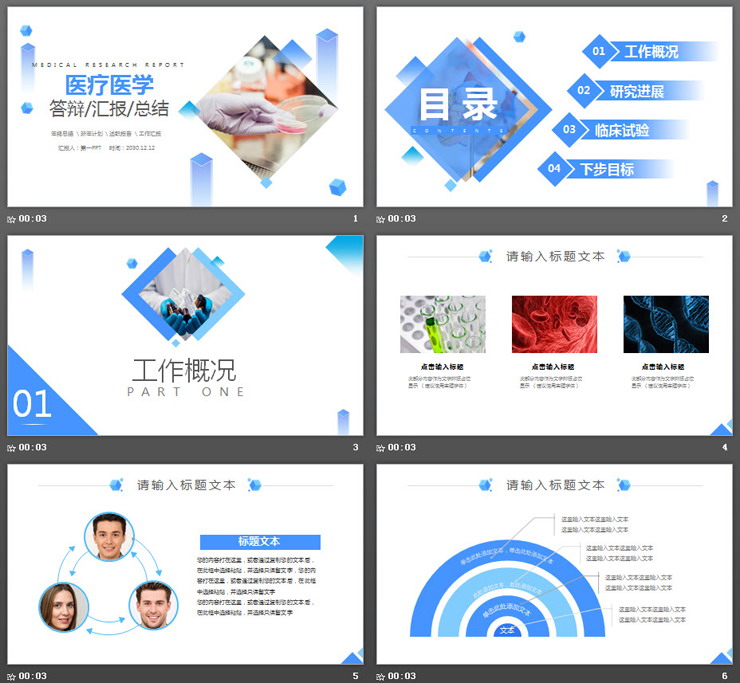 蓝色简洁医疗医学类毕业答辩工作汇报通用PPT模板,共26页;