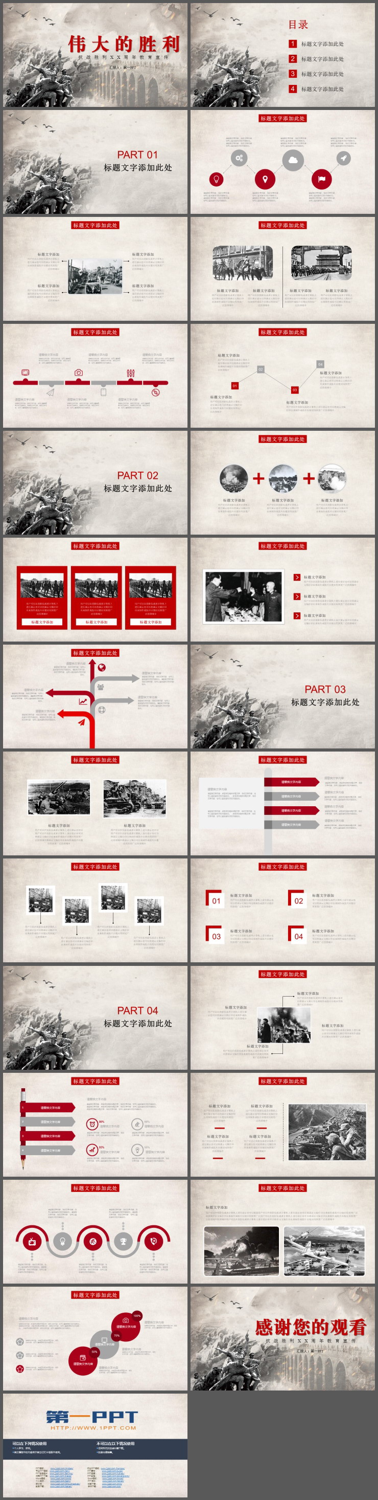 《伟大的胜利》抗战胜利纪念PPT模板,共26页;