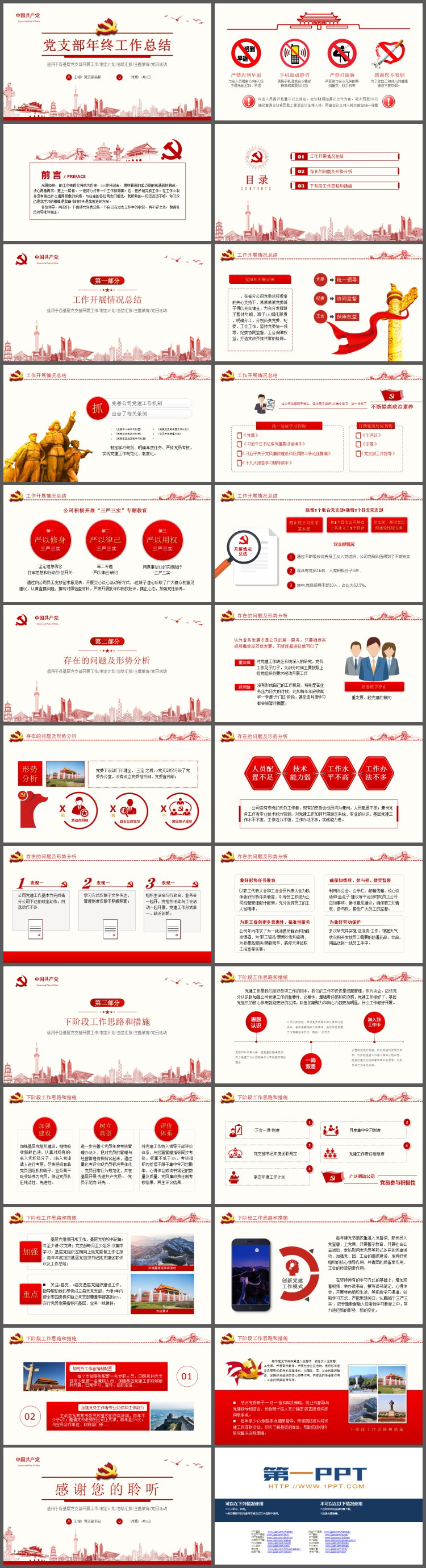 这是一套精致党支部年终工作总结汇报PPT模板,共25页;