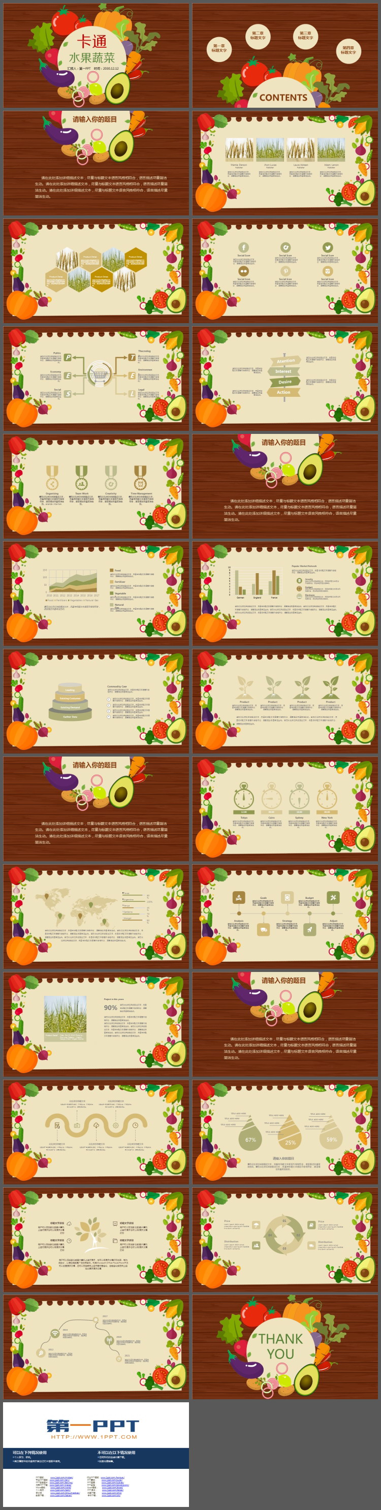 这是一套卡通蔬菜PPT模板,共26页;
