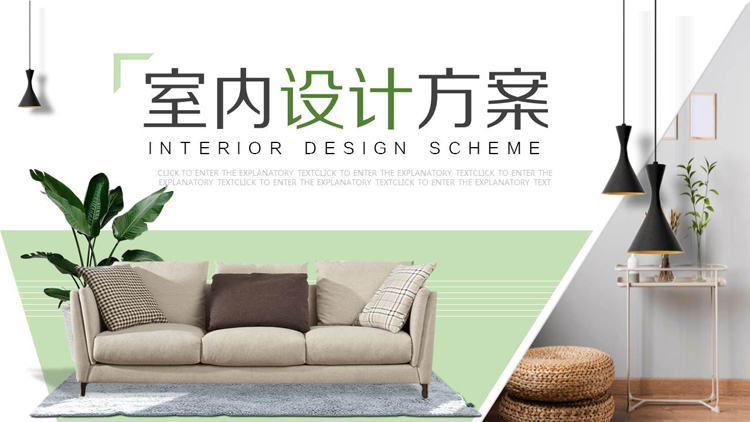 这是一套清新绿色室内装修设计方案展示PPT模板,共24页;
