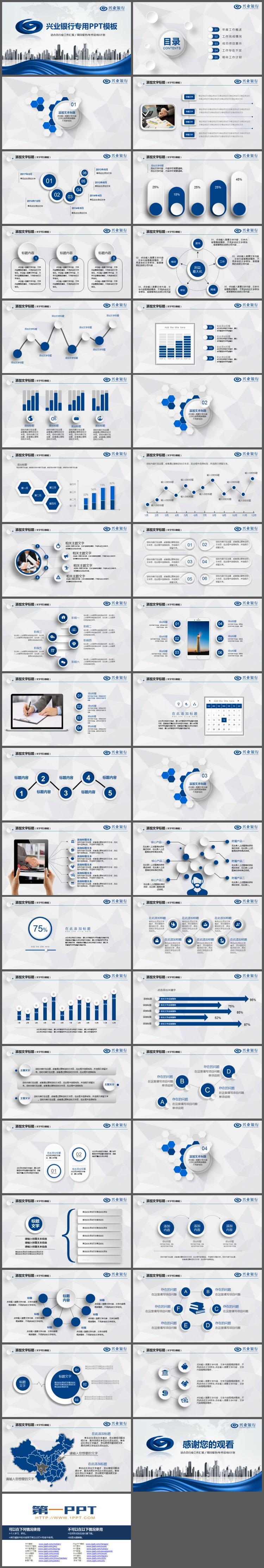 这是一套蓝色微立体兴业银行专业PPT模板,共40页;