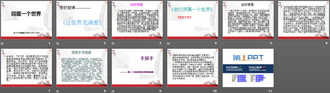 关键词:我们同属一个世界教学课件,八年级上册音乐PPT课件下载,八年级音乐幻灯片课件下载,我们同属一个世界PPT课件下载,.PPT格式;