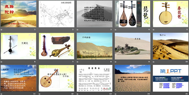 关键词:丝路驼铃教学课件,八年级上册音乐PPT课件下载,八年级音乐幻灯片课件下载,丝路驼铃PPT课件下载,.PPT格式;