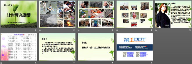关键词:让世界充满爱教学课件,八年级上册音乐PPT课件下载,八年级音乐幻灯片课件下载,让世界充满爱PPT课件下载,.PPT格式;
