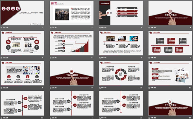 幻灯片模板以红色和浅灰色搭配设计的,简洁实用幻灯片模板,内部图表使用扁平化设计风格,幻灯片之间的切换带有动态PPT动画效果;