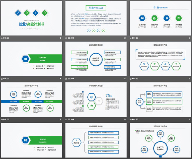 关键词:蓝色绿色搭配幻灯片模板,动态微立体PowerPoint模板,创业计划书PPT模板免费下载,.PPTX格式;