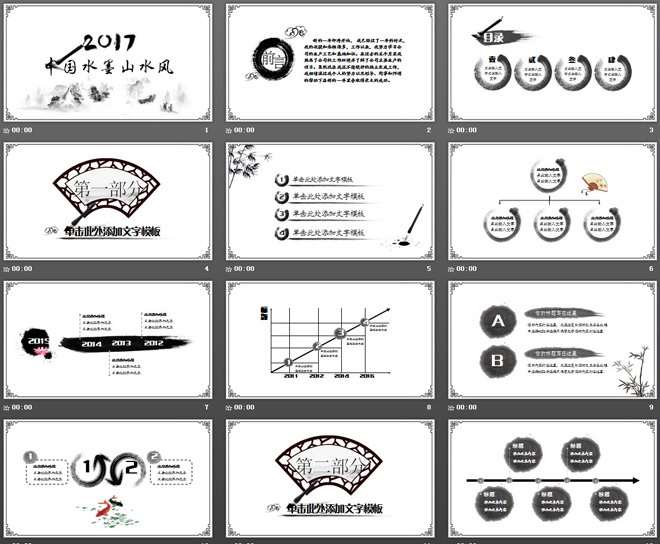 关键词:动态水墨画幻灯片模板,黑白中国风PowerPoint模板免费下载,.PPTX格式;