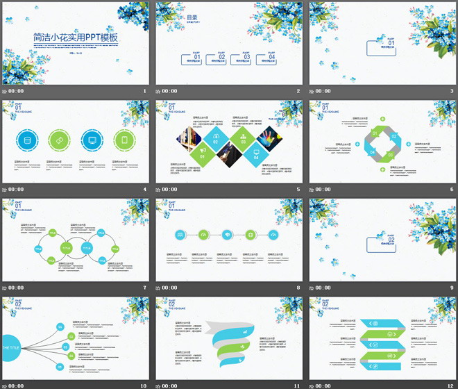 关键词:蓝色清新花卉幻灯片模板,动态复古风格PowerPoint模板免费下载,.PPTX格式;