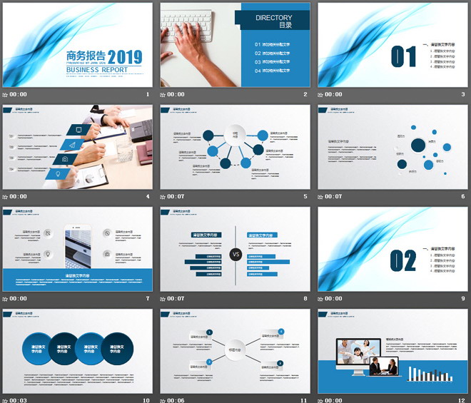这是一套带有动态效果的,蓝色抽象曲线背景的简约商务PPT模板。第一PPT模板网提供简洁简约幻灯片模板免费下载;