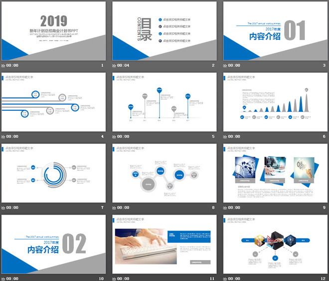 关键词:动态简洁简约幻灯片模板免费下载,蓝灰工作总结PPT模板,.PPTX格式;