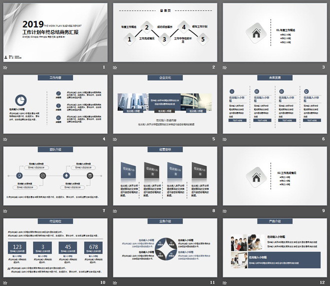 幻灯片封面使用了灰色抽象曲线作为PPT背景图片,幻灯片模板内部使用灰色扁平化设计风格制作了整套PowerPoint图表,方便制作PPT使用。本幻灯片模板适合用于制作时尚产品企业制作,工作总结PPT使用;