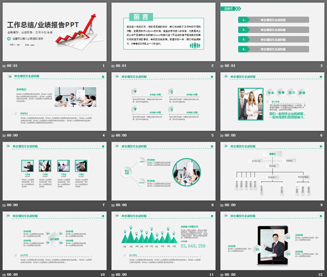 这是一套微立体风格红色上升箭头背景的,工作总结业绩报告PPT模板。第一PPT模板网提供精美商务幻灯片模板免费下载;