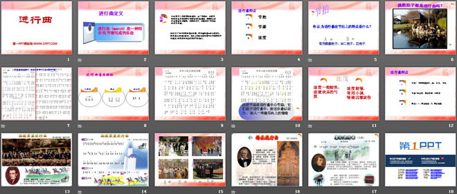 关键词:进行曲教学课件,九年级上册音乐PPT课件下载,九年级音乐幻灯片课件下载,进行曲PPT课件下载,.PPT格式;