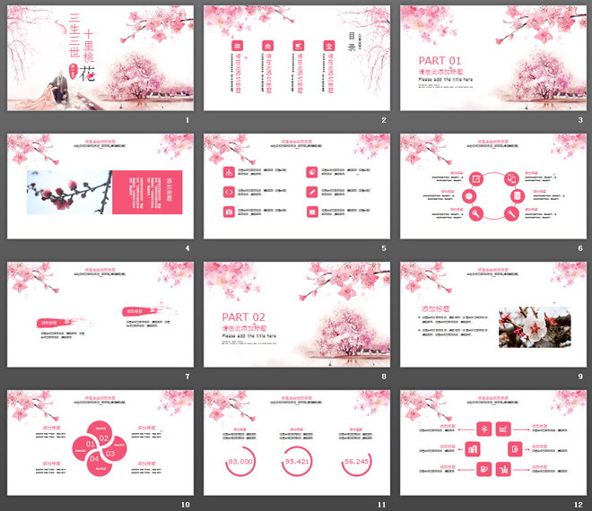 关键词:十里桃花唯美幻灯片背景图片,粉色扁平化PowerPoint图表,粉色扁平化幻灯片图标,精美爱情PPT模板,.PPTX格式;