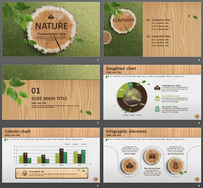 关键词:绿色草地、树木木桩、年轮PowerPoint背景图片,动态植物背景幻灯片模板,木纹质感幻灯片图表,.PPTX格式;