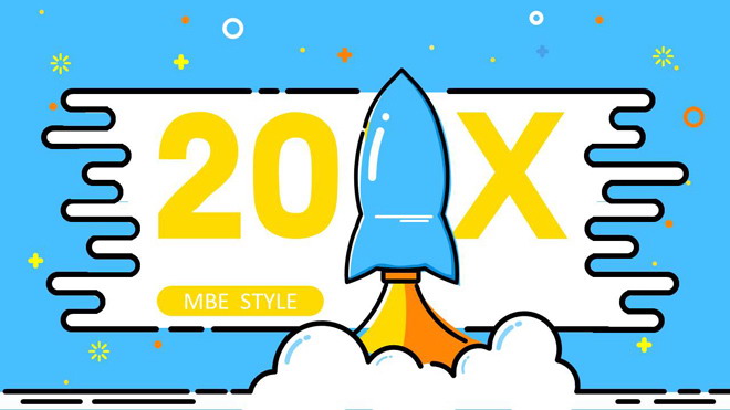 这是一套蓝色MBE风格的,卡通火箭升空背景PPT模板,共20页,第一PPT模板网提供精美卡通幻灯片模板免费下载;