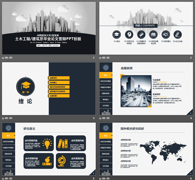 这是一套立体城市建筑模型背景的,土木工程与建筑系毕业论文答辩PPT模板,共40张。第一PPT模板网提供精美毕业答辩幻灯片模板免费下载;