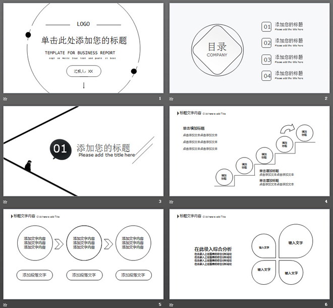 这是一套黑白简洁线条设计风格的,通用工作汇报PPT模板,共24张。第一PPT模板网提供简洁幻灯片模板免费下载;