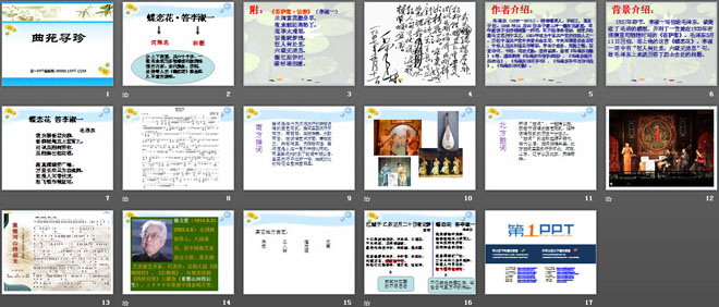 关键词:曲苑寻珍教学课件,九年级上册音乐PPT课件下载,九年级音乐幻灯片课件下载,曲苑寻珍PPT课件下载,.PPT格式;