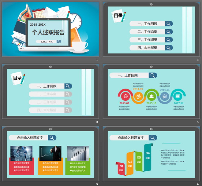关键词:彩色卡通风格幻灯片模板免费下载,动态个人述职报告PPT模板,彩色扁平化PowerPoint图表,.PPTX格式;