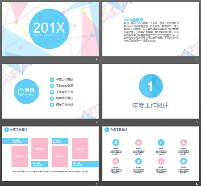这是一套蓝粉点线多边形背景的,时尚风格工作总结汇报PPT模板,共31张。第一PPT模板网提供精美时尚幻灯片模板免费下载;