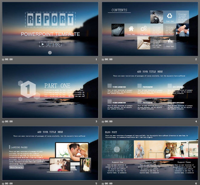关键词:精美海景、自然风景PPT背景图片,白色半透明扁平化幻灯片图表,动态iOS风格PowerPoint模板,.PPTX格式;
