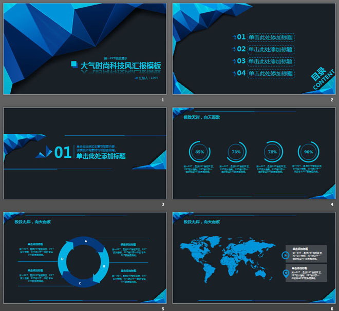这是一套蓝色立体多边形装饰的,通用商务PPT模板,共12张。第一PPT模板网提供精美多边形背景幻灯片模板免费下载;