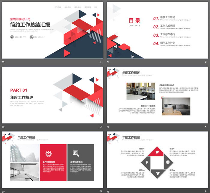 关键词:创意三角形、多边形PowerPoint背景图片,动态工作总结PPT模板,红色灰色搭配扁平化幻灯片图表,.PPTX格式;