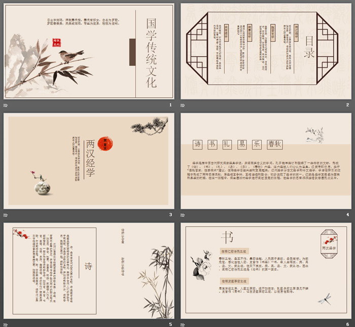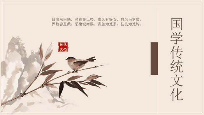 这是一套古典花鸟画背景的,国学传统文化主题PPT模板,共21张。第一PPT模板网提供精美古典风格幻灯片模板免费下载;