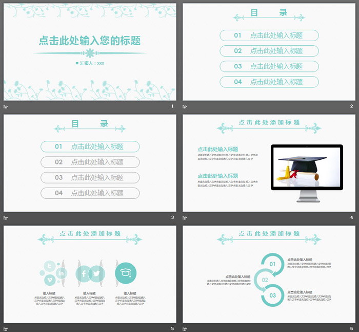 关键词:淡雅花纹、清新小花图案PowerPoint背景图片,蓝色扁平化幻灯片图表,动态简洁PPT模板,.PPTX格式;